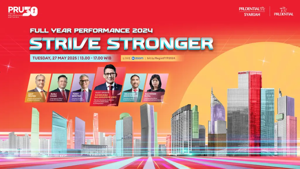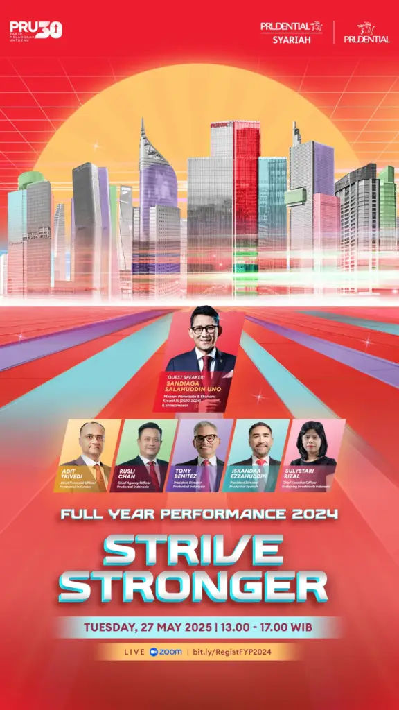 ClientPrudentialYear2025Event OrganizerKantara CreativeDescriptionPrudential Full Year Performance "Strive Stronger" is Prudential Indonesia's annual appreciation theme highlighting the company's achievements throughout 2024. This theme reflects the spirit of striving to grow stronger, provide better protection for customers, and recognize the contributions of agents, partners, and employees.